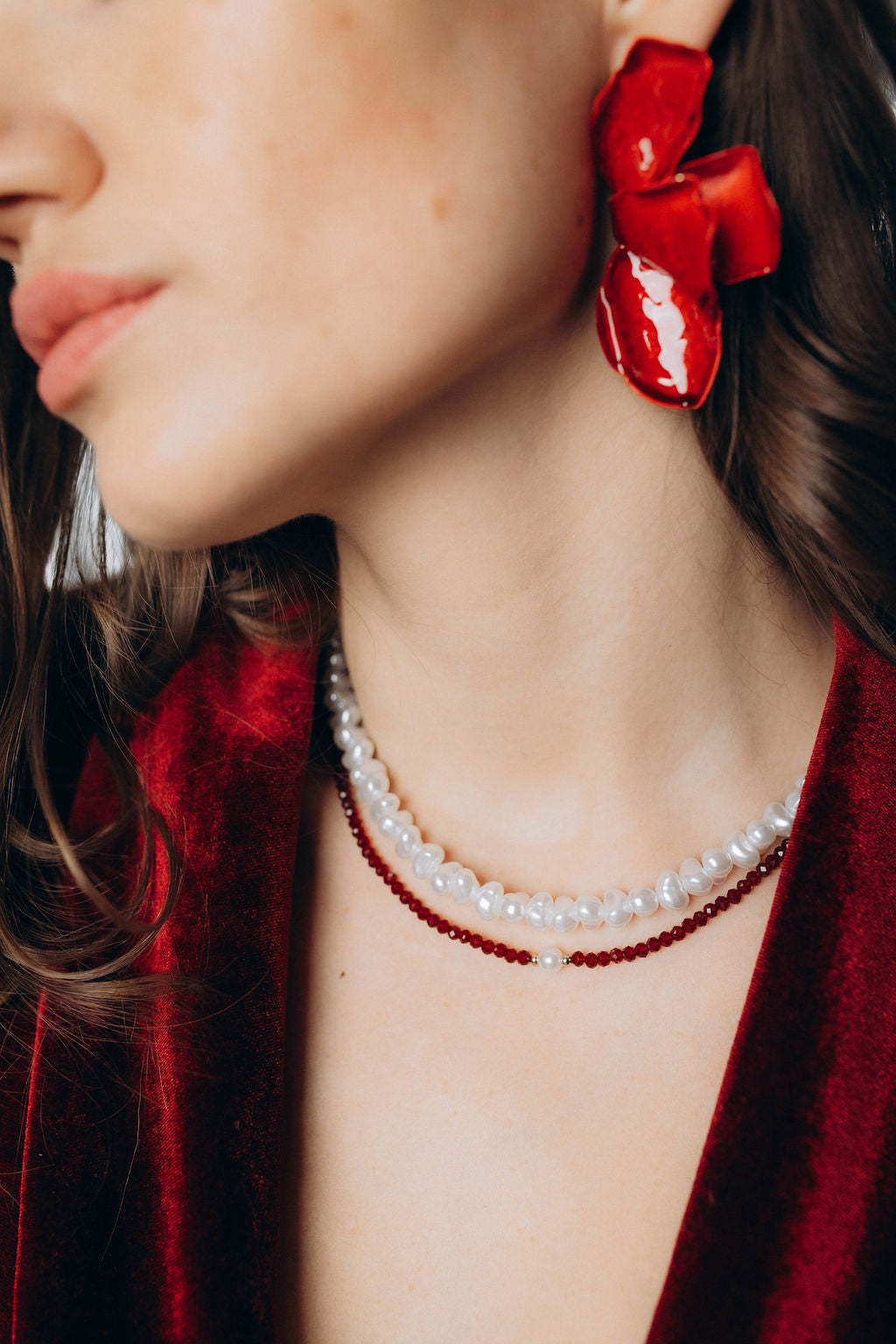 Bordo čokeris ar baltu pērlīti