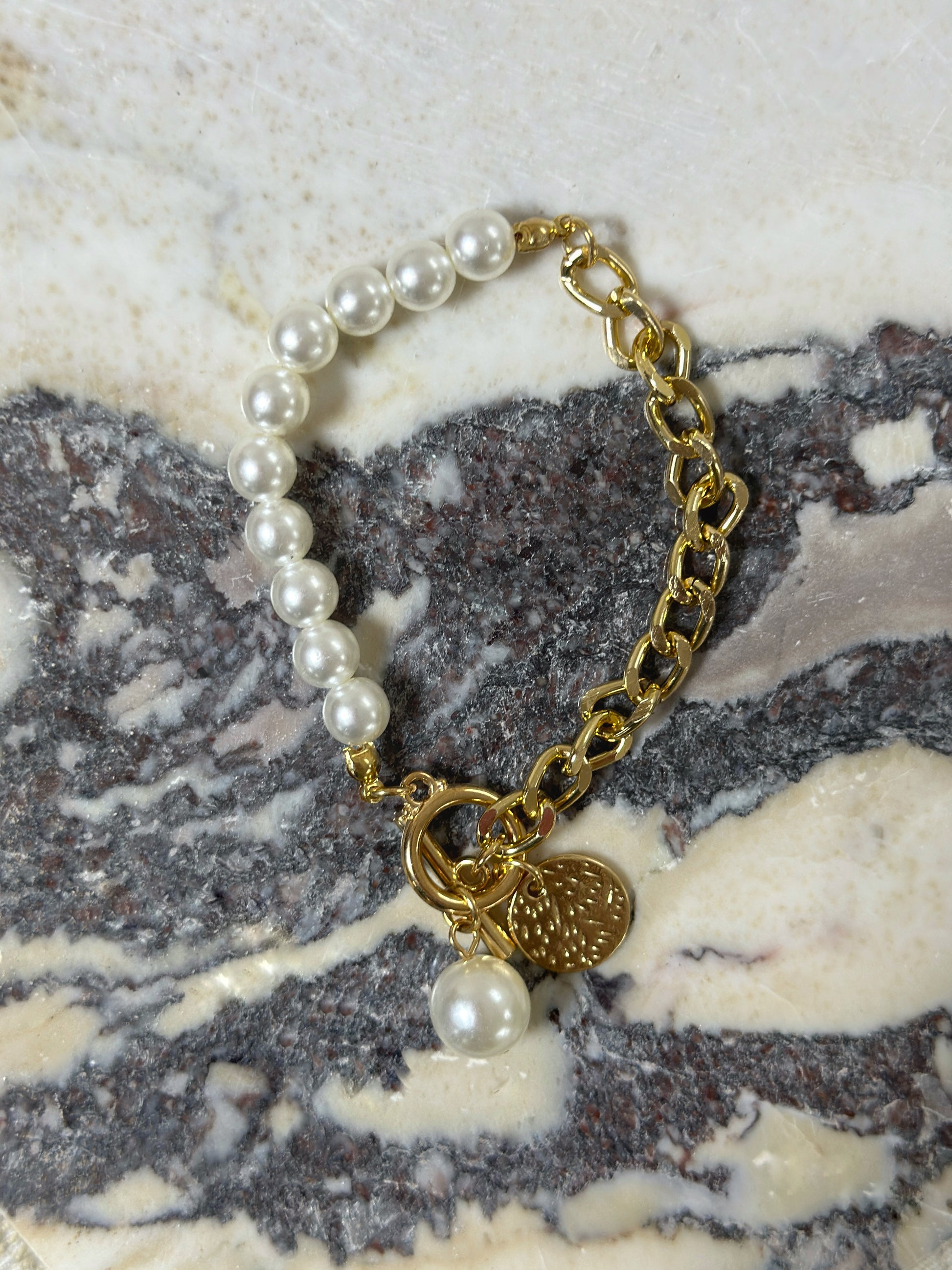 Rokassprādze zelta krāsā kombinācijā ar baltām pērlītēm!