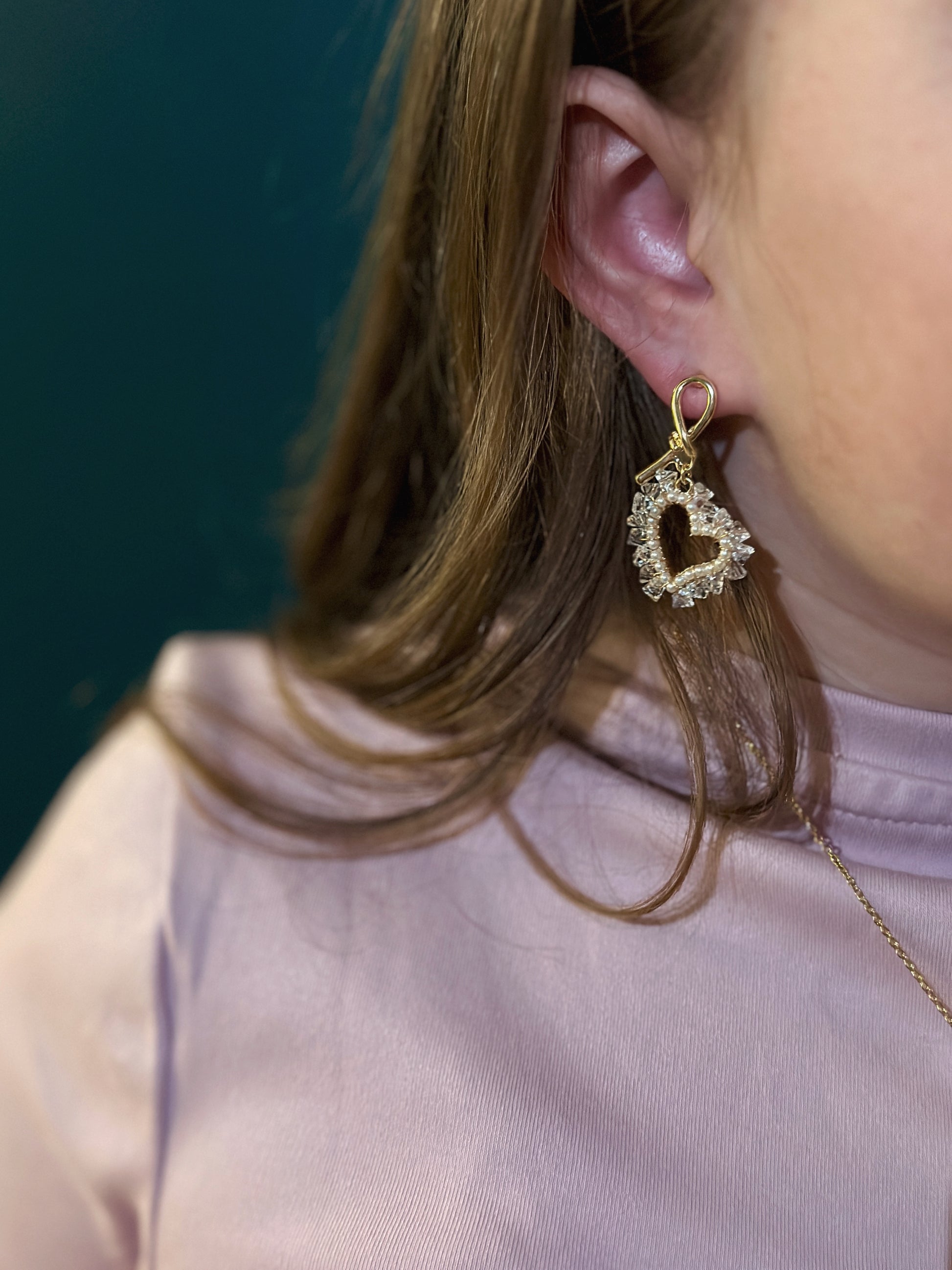 Piešķir maigumu un mīļumu savam tēlam ar sirds formas un mirdzošu pērlīšu auskariem!✨
