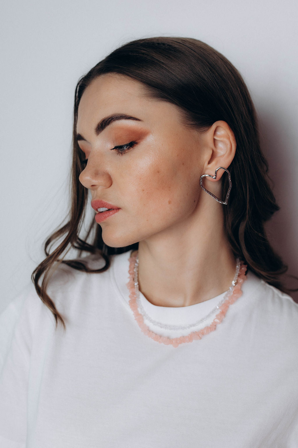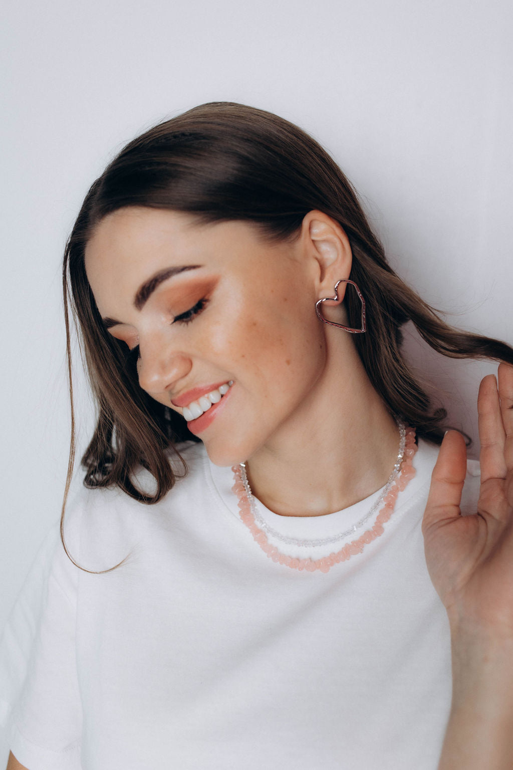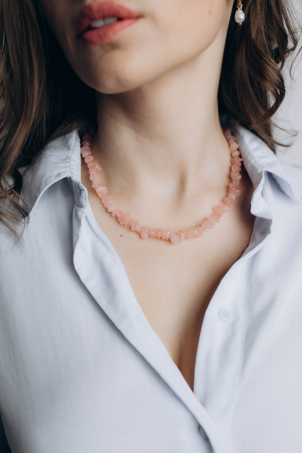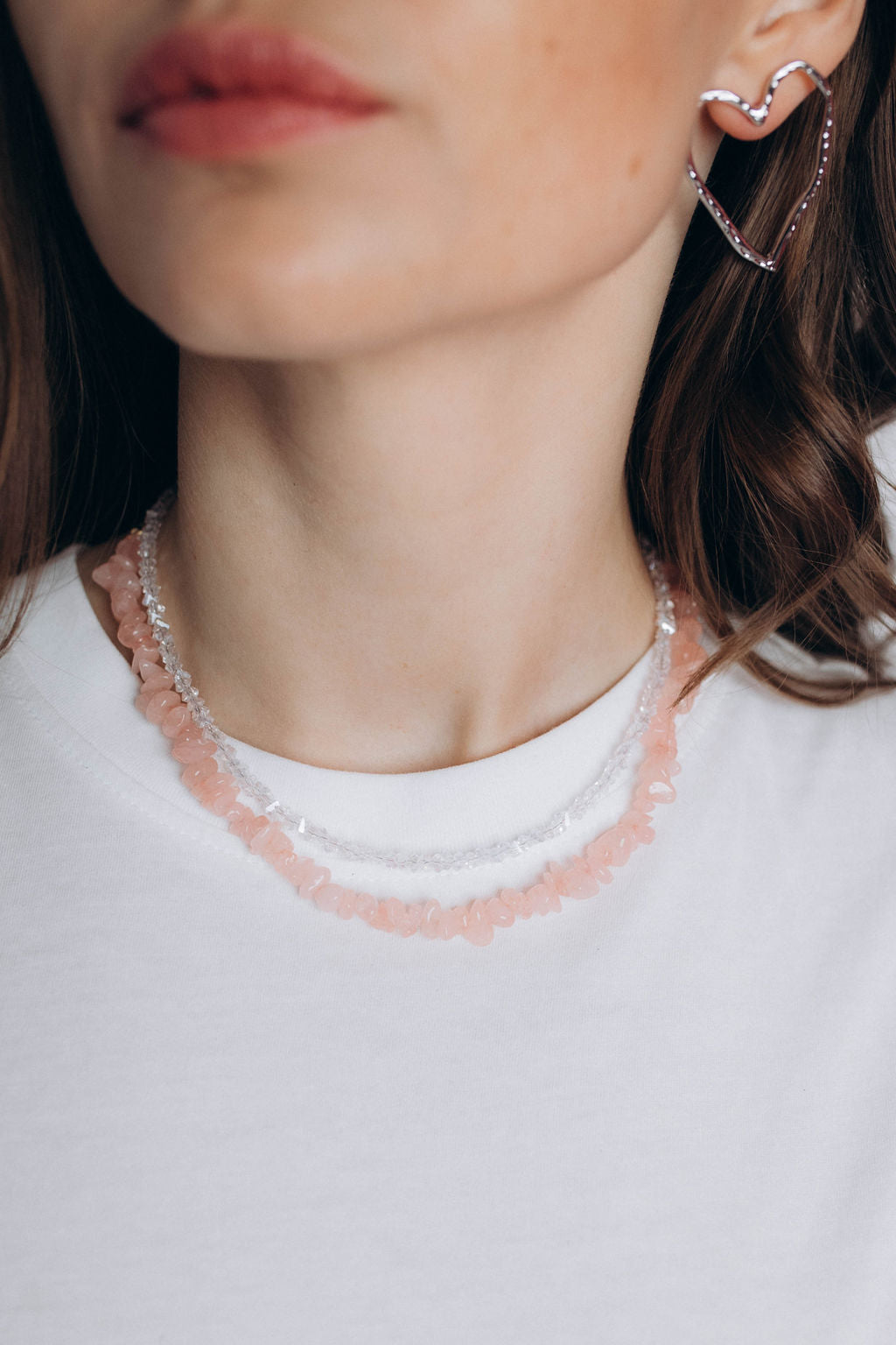 Komplekts: rozā akmentiņu čokeris + baltu pērlīšu čokeris
