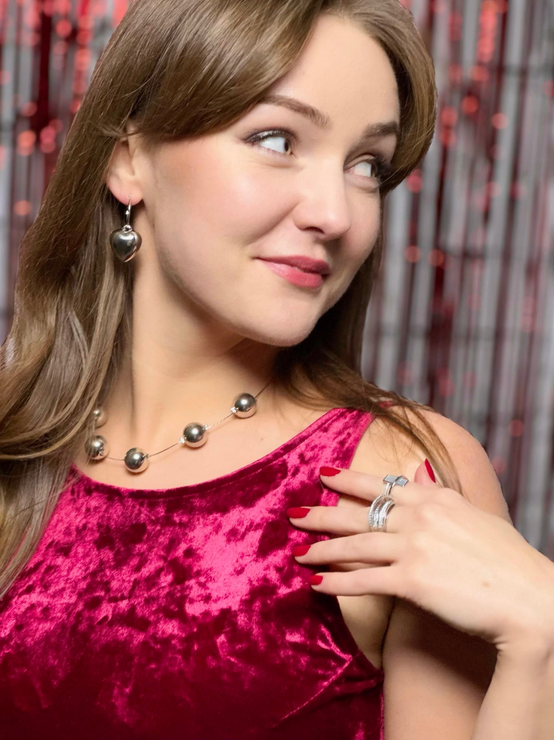 ✨Sudraba toņa aksesuārs, kas būs elegants papildinājums tēlam. Spīdīgās kaklarotas lodītes piešķir izsmalcinātību un svinīgu noskaņu!