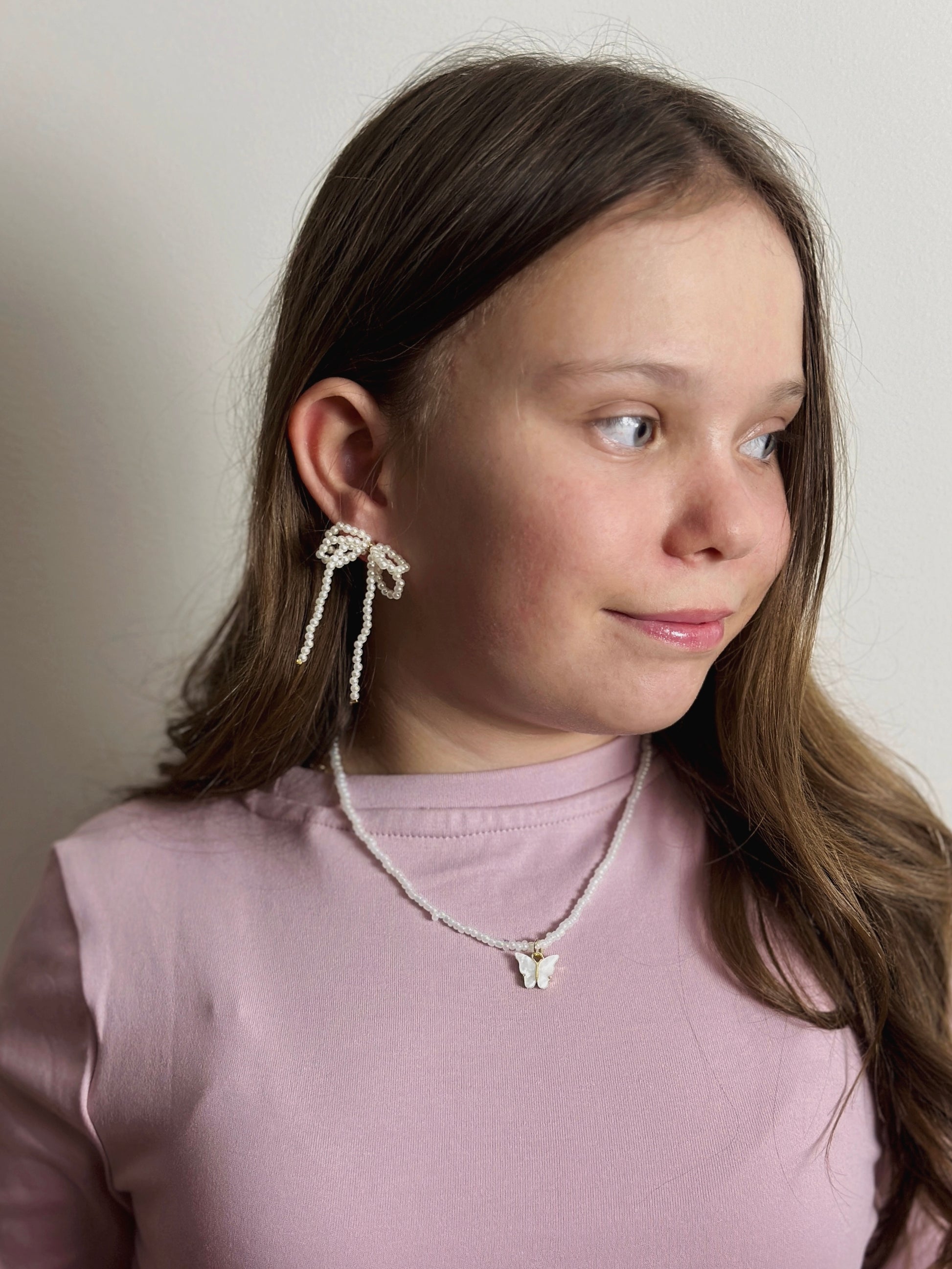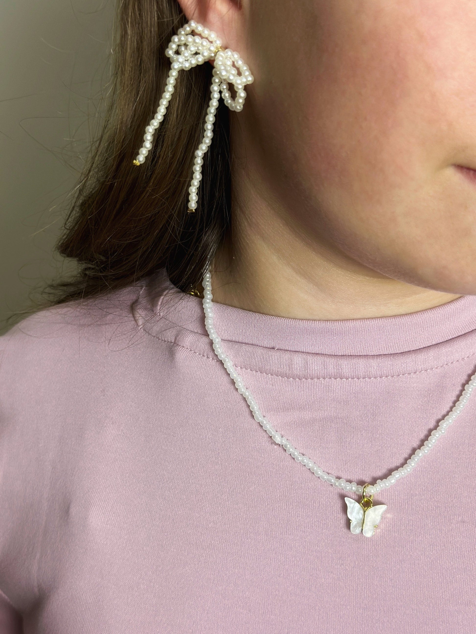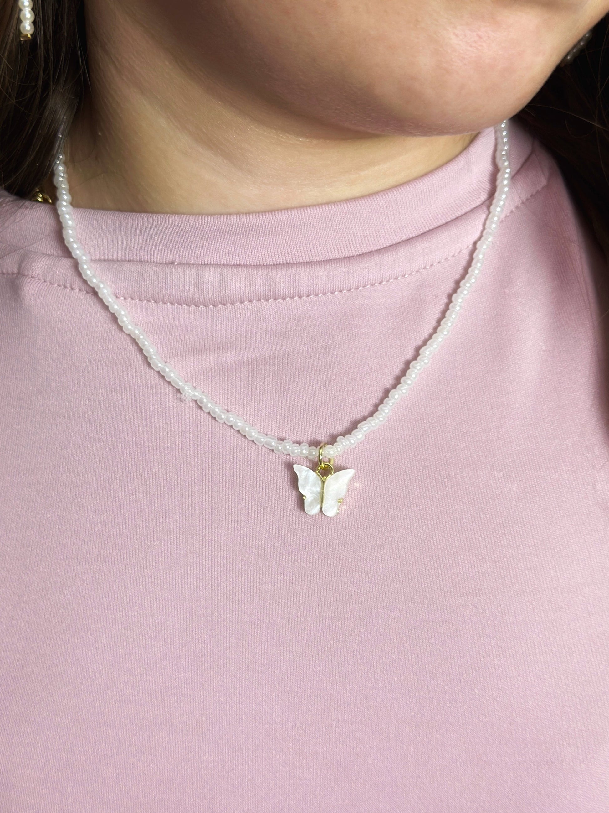 Pērlīšu kaklarota ar taurenīti – burvīgs un maigs aksesuārs meitenēm! Smalkās pērlītes un taurenīša akcents piešķir rotaļīgumu un eleganci, padarot šo kaklarotu par lielisku izvēli tērpu papildināšanai. 🌸