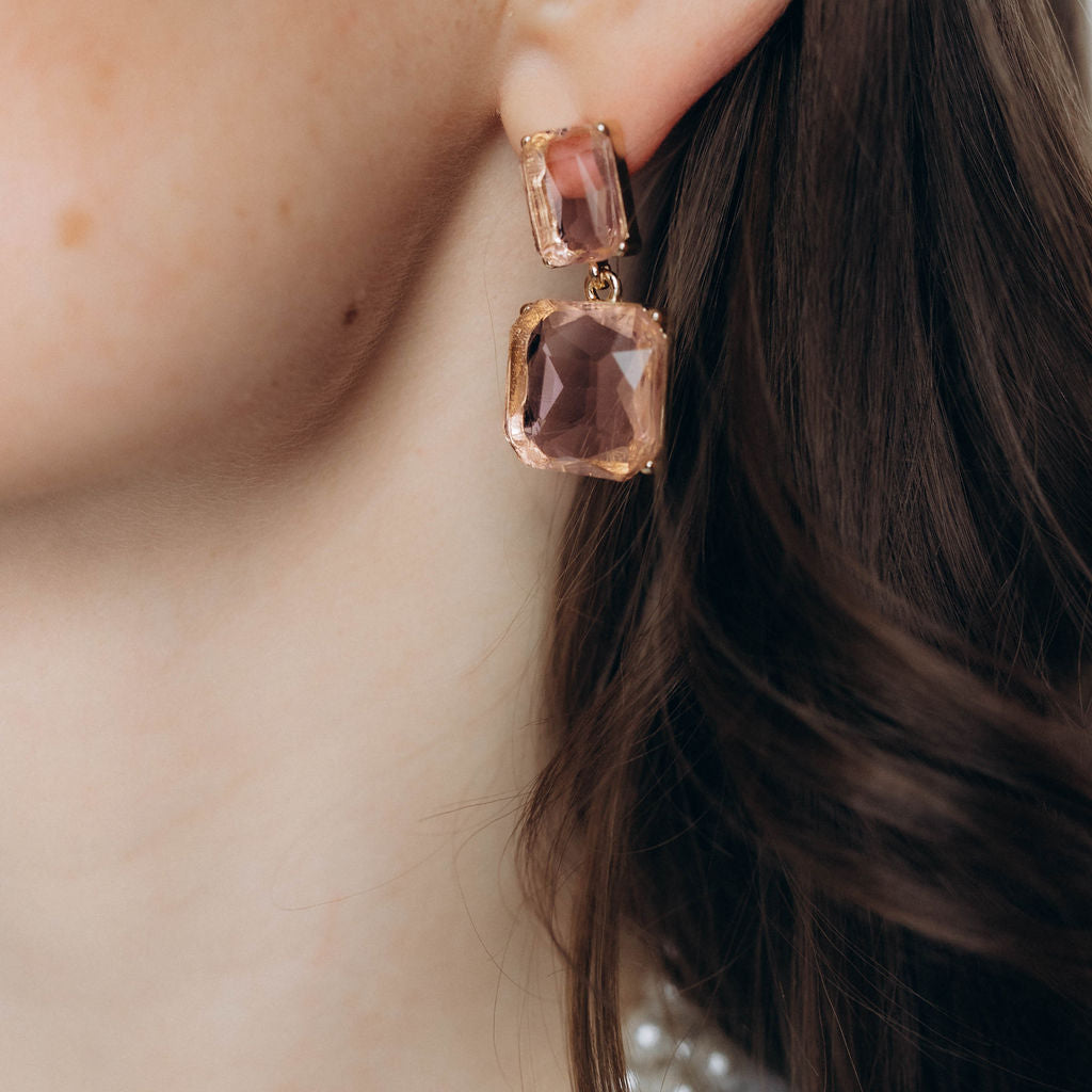 Rozā, stikla auskari