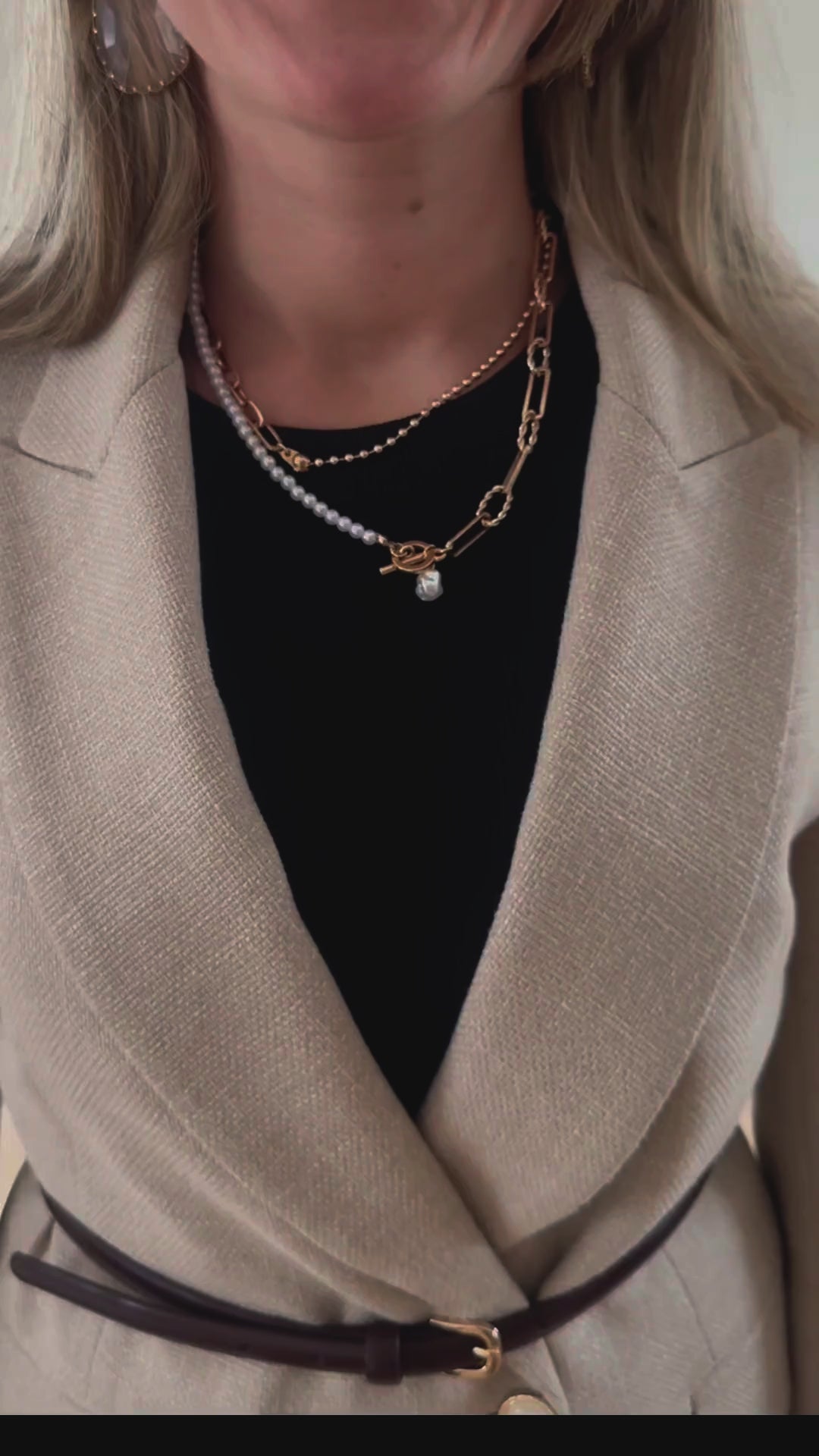 Kaklarota izceļas ar daudzpusību un eleganto dizainu, elegants baltā un zelta apvienojums.