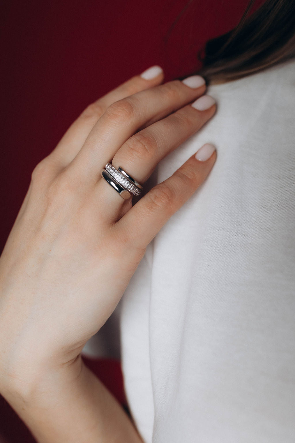 Sudraba krāsas gredzens ar akmentiņiem
